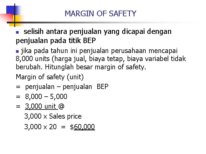 Bep dalam rupiah = rp.125.000.000. Nah, semoga anda semakin paham setelah mempelajari contoh soal bep di atas. Penugasan mandiri (optional) perhatikan table data usaha " fayana souvenir " berikut ini : Beberapa hal termasuk ke dalam variable cost … Dari pengertian tersebut, maka dapat ditarik kesimpulan bahwa yang dimaksud dengan break even point (bep) adalah suatu keadaan di mana perusahaan tidak mengalami kerugian ataupun keuntungan yang bisa juga …